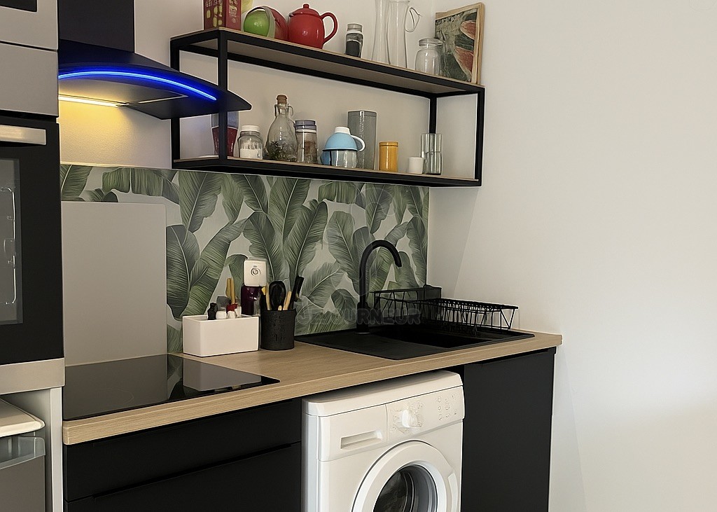 La cuisine, parfaitement équipée, vous permettra de cuisiner comme à la maison. Elle est ouverte sur le salon, dont vous pourrez profiter en écoutant de la musique. Le logement est équipé de la climatisation, idéale pour les fortes chaleurs estivales.