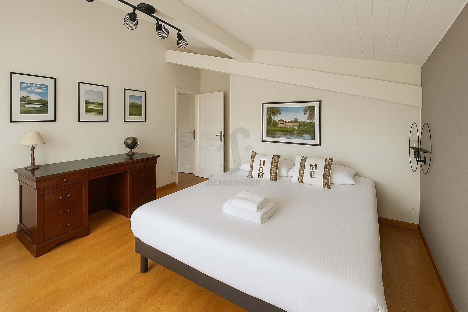 – The first bedroom has a 4 m² adjoining dressing room and a newly renovated shower room, as well as a king-size bed (180 x 200).