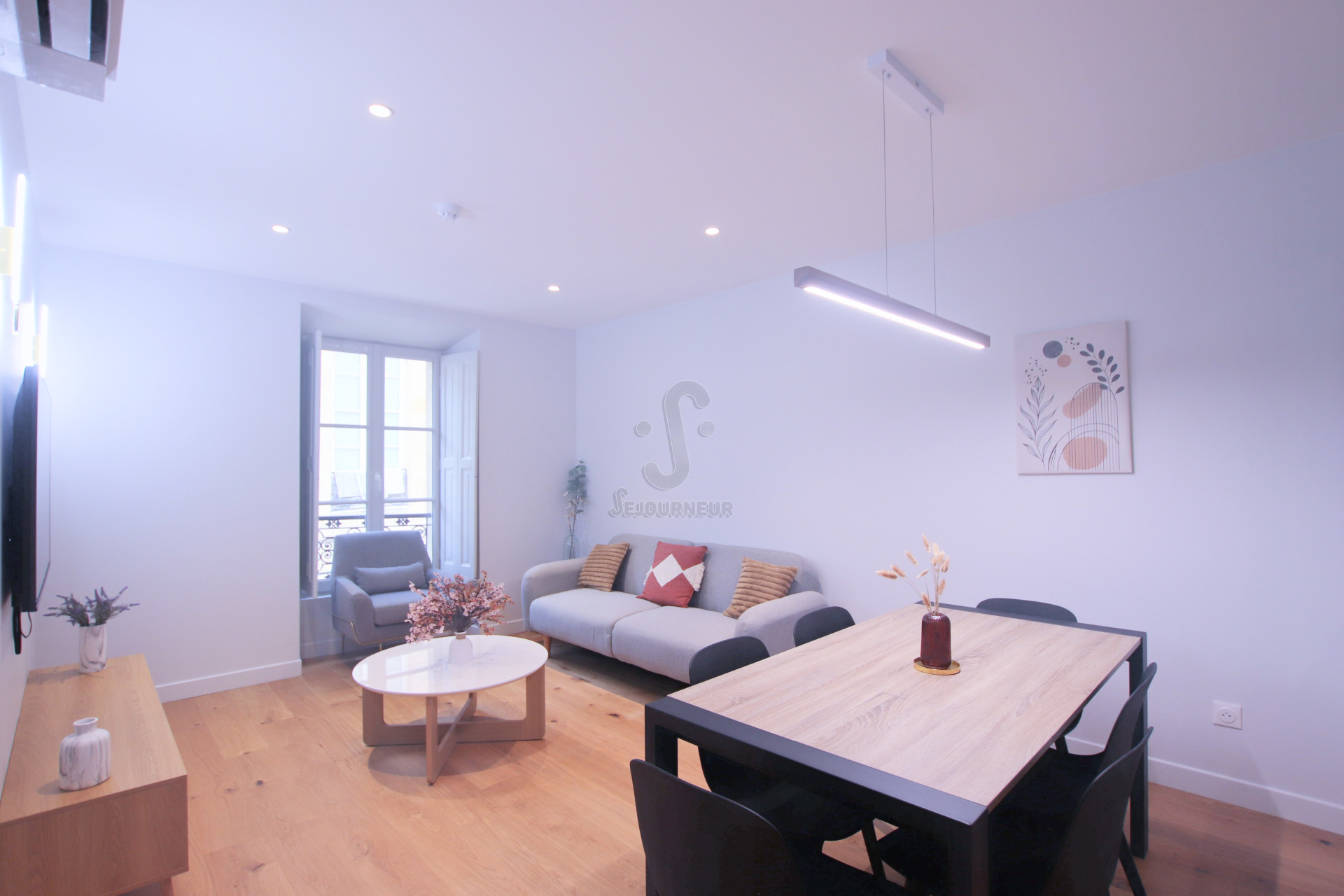Welcome to this spacious and modern T4 apartment which can welcome up to 6 persons, ideally located in the very center of Bordeaux, just steps away from the city’s main attractions, lively squares, shops, and restaurants. Situated on the third floor of a secure building with an elevator, it offers exceptional comfort for your stay.