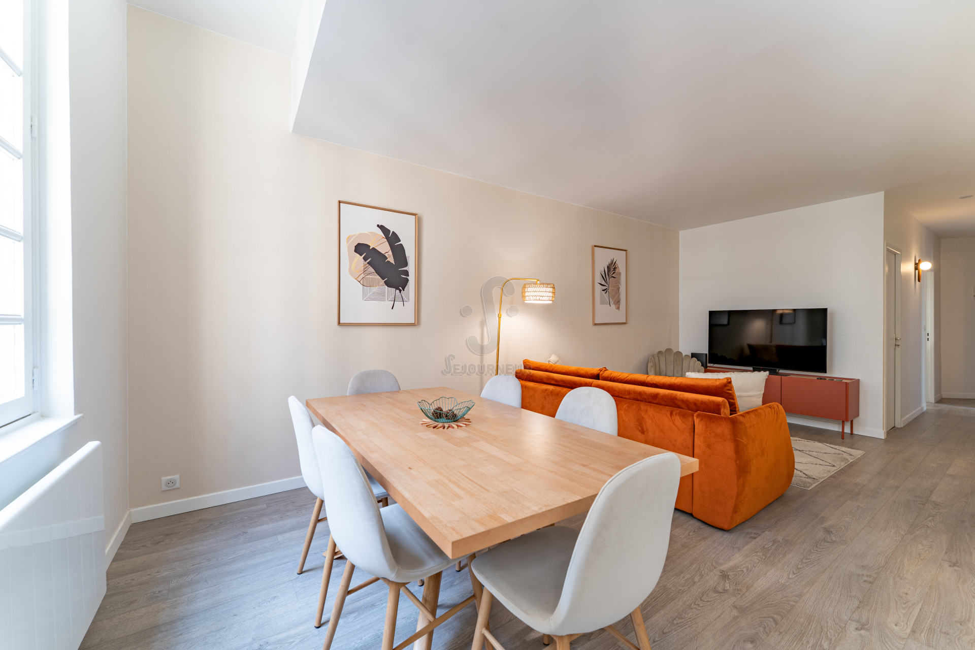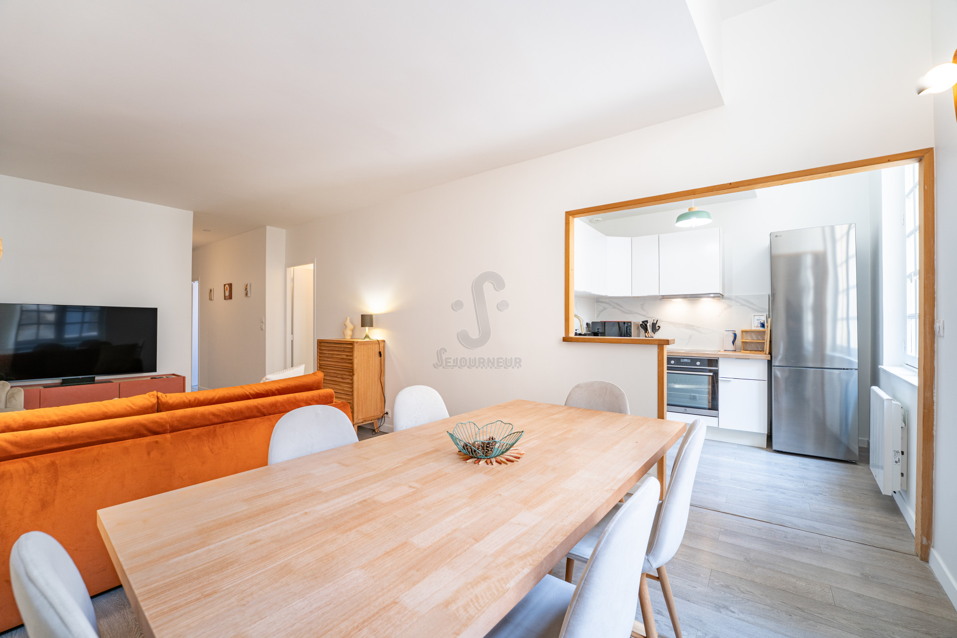 Ce logement est idéalement conçu pour accueillir confortablement jusqu’à six personnes. Il dispose de deux chambres charmantes, chacune équipée d’un lit de 160 cm (donc 1 lit qui peut se diviser en deux petits lits) et un canapé convertible dans le salon, promettant une nuit de sommeil réparatrice. La décoration sobre et élégante crée une ambiance accueillante et apaisante.