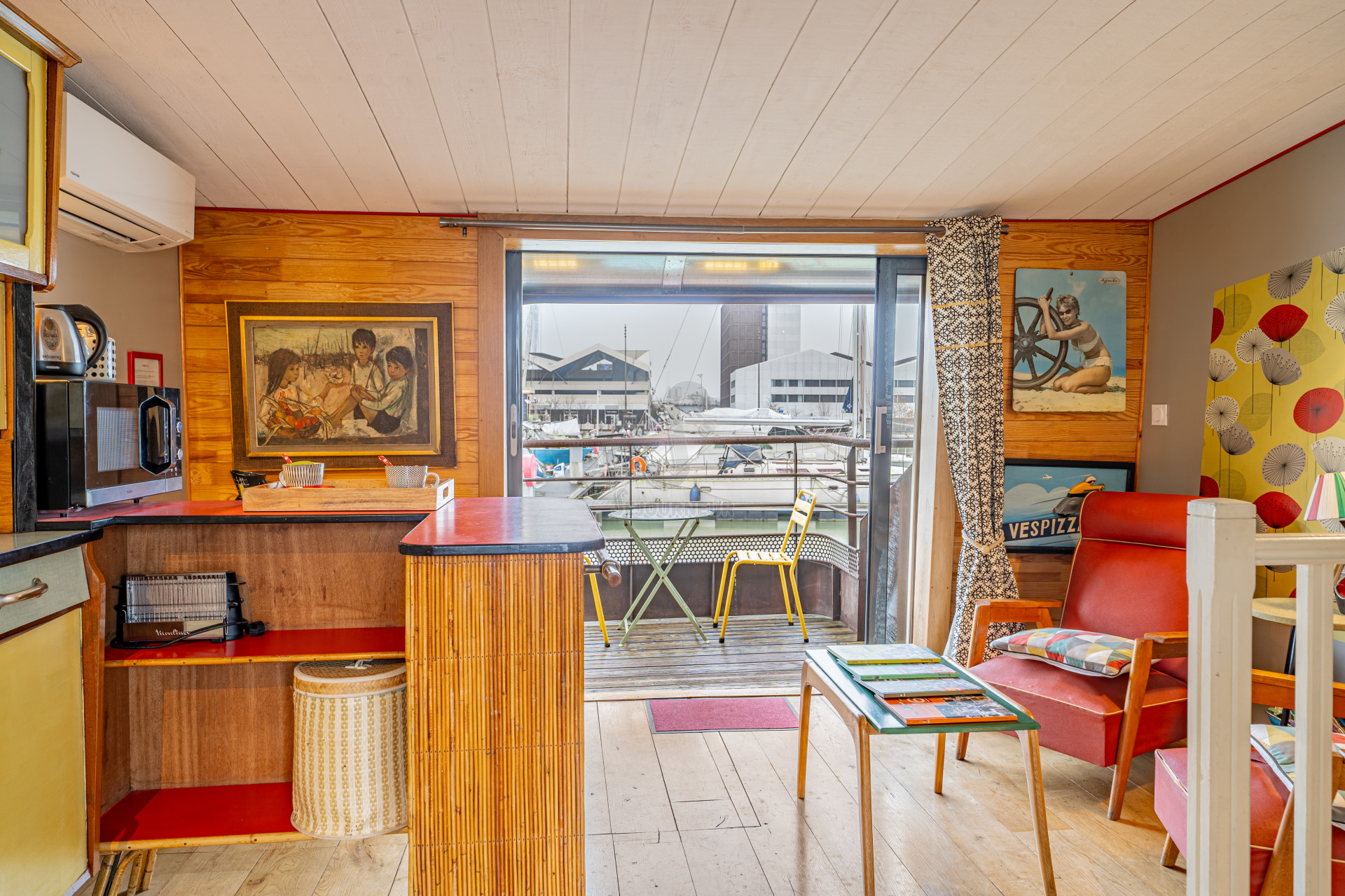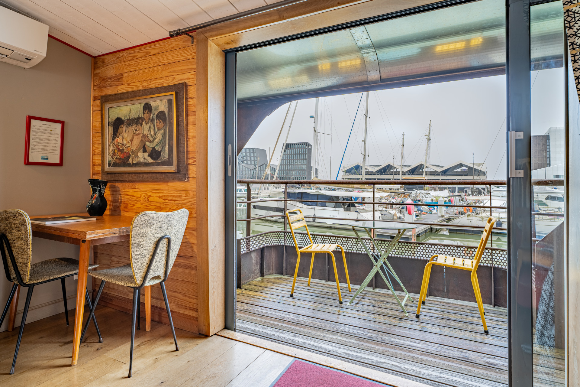 La péniche est amarrée sur un quai très paisible, a l’écart des bruits de la ville, tout en étant très proche des commodités.