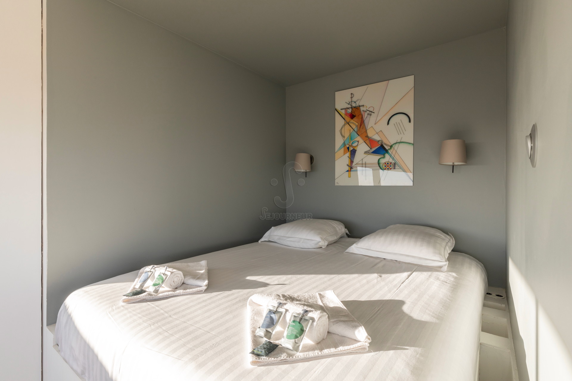 – Une chambre avec lit double (140×200 cm) et télévision TNT.