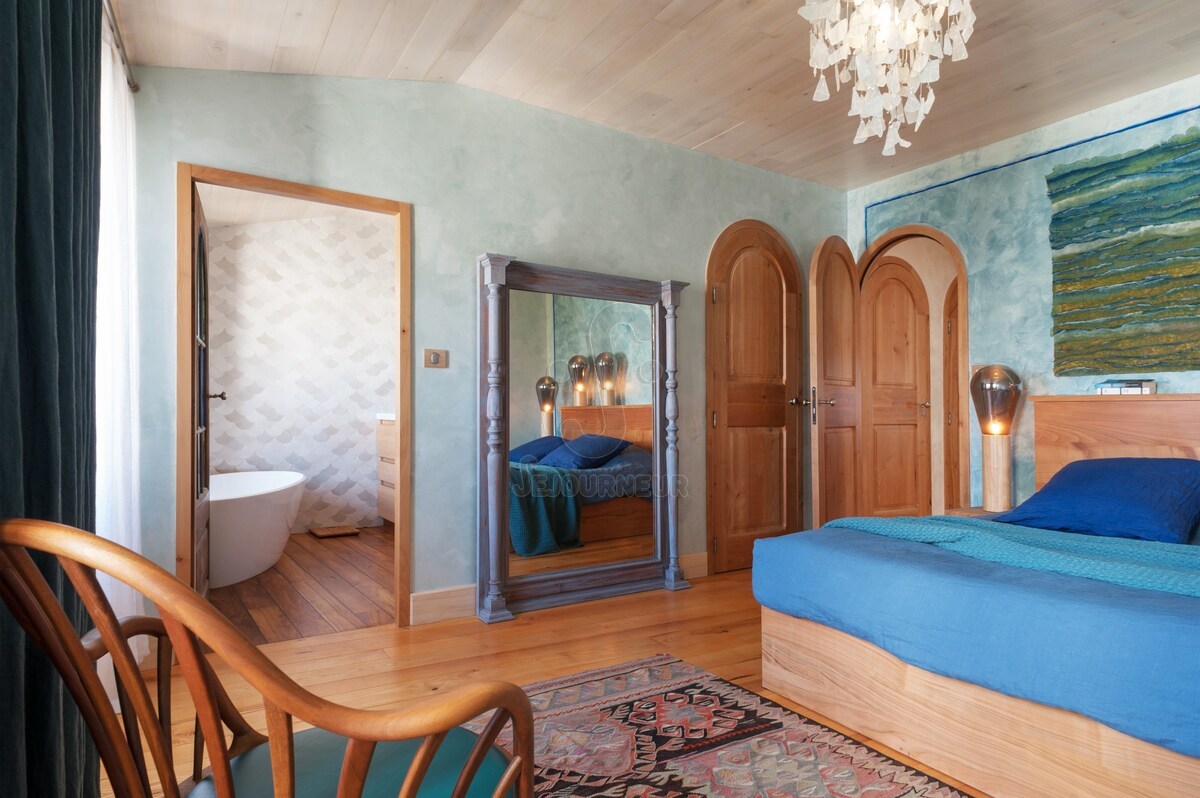 Within Eden Ouest, the Maison des Artistes spans 130 square meters, a spacious design to accommodate up to eight guests. Renovated in 2016, every detail of this apartment has been carefully selected for its aesthetic and quality. Three main bedrooms and two additional beds make up the sleeping area, while outside, a private balcony adjoins the lush garden. The interior, a true homage to art, is dotted with paintings and art objects that blend into a bucolic setting, creating an environment that is both enchanting and inspiring. Tenants also have access to the tree-lined garden, inviting contemplation. Nestled in the heart of La Rochelle, this address is a haven of tranquility and culture, with the option to savor a homemade breakfast, starting the day on a gourmet note.